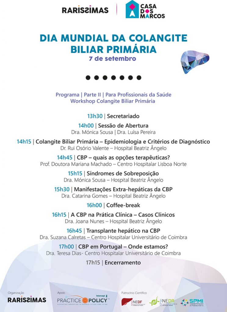 Amanhã, 7 de setembro, realiza-se a cerimónia de comemoração do Dia Mundial da Colangite Biliar Primária e encerramento do Projeto CBP – Cidadania Rara, distinguido pelo prémio internacional Pratice to Policy. O encontro, organizado pela Associação Nacional de Deficiências Mentais e Raras (Raríssimas), tem lugar na Casa dos Marcos, em Setúbal.